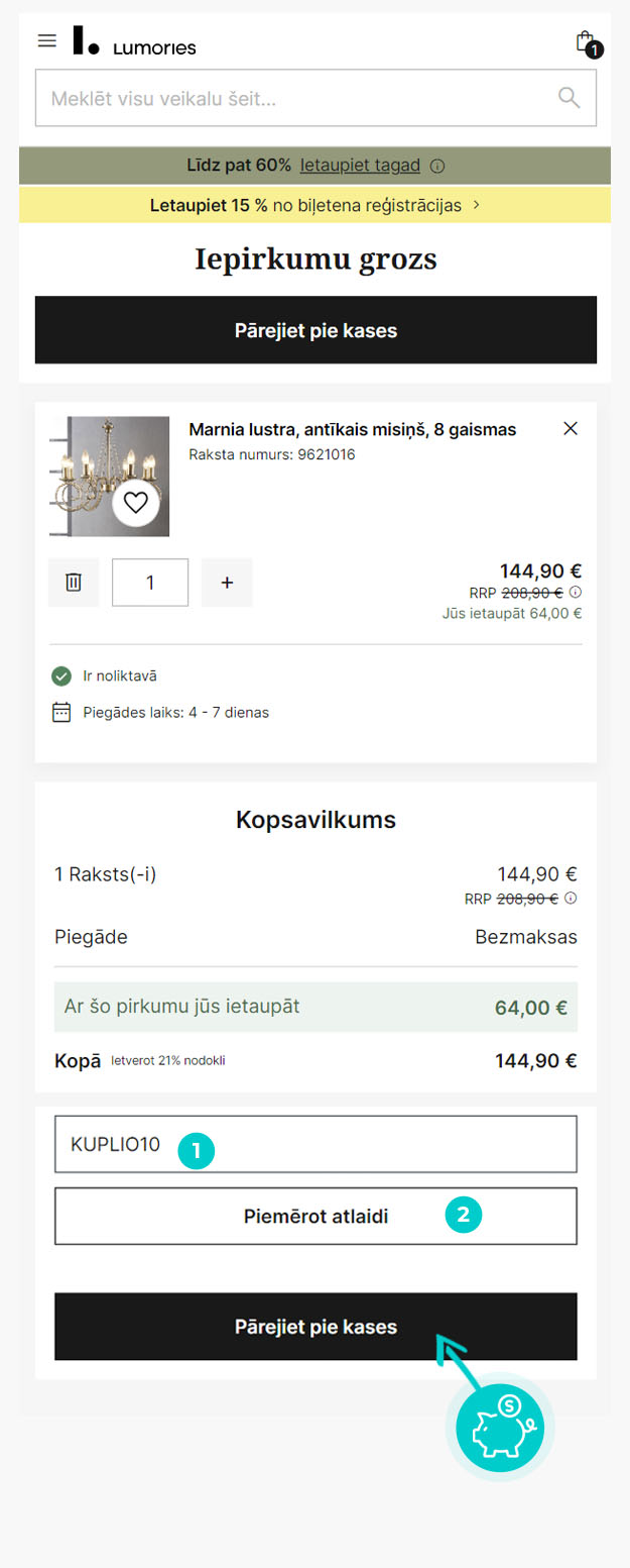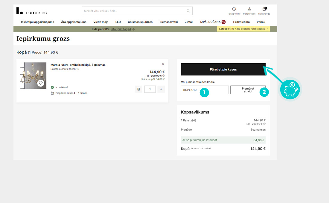 Dažreiz pietiek ar nelielu ieguvumu, lai iepirkšanās kļūtu vienkāršāka. Šis bonuss dod iespēju bez steigas iepazīt Lumories piedāvājumu un noformēt pirmo pirkumu ar patīkamu priekšrocību.