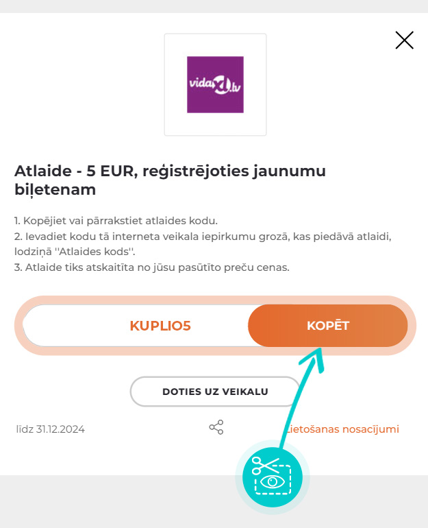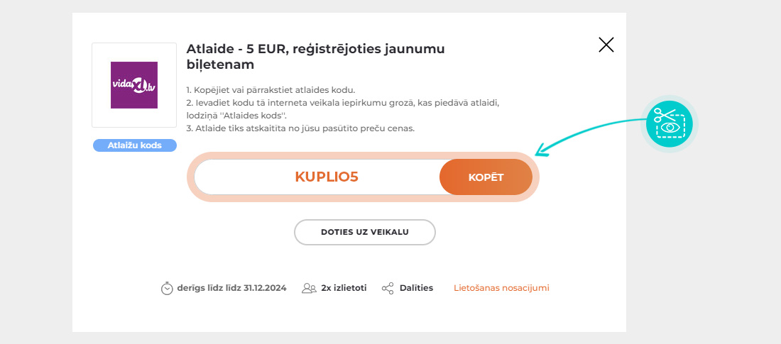 Nokopē vai pārraksti atlaides kodu un nospied pogu “Doties uz veikalu”. Tu tiksi automātiski novirzīts uz vidaXL oficiālo interneta veikalu.
